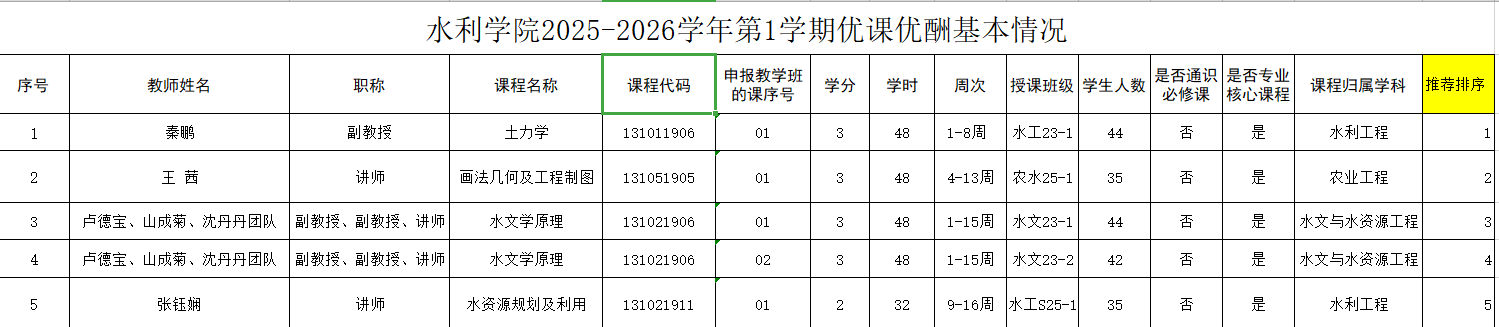 根据《太阳成集团tyc41183“优课优酬”奖励实施办法(试行)》(浙水院〔2024〕35号)、《tyc41183太阳成集团“优课优酬”奖励办法实施细则》(浙水院水利〔2024〕4号)规定,经任课教师自主申报,学院“优课优酬”奖励推荐组审核初评,推荐以下教师(团队)申报校级2026-2026学年第一学期“优课优酬”奖励,现予以公示。