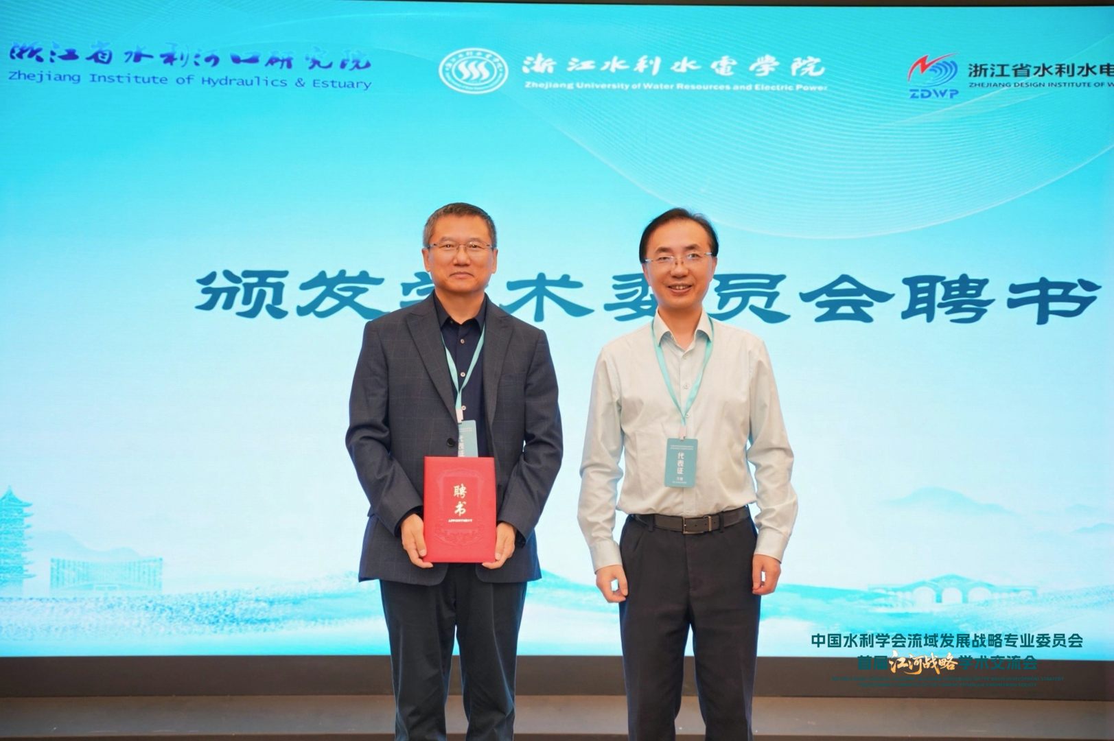 随后,万健宣读了首届学术委员会名单。钮新强院士受聘为学术委员会主任,清华大学王忠静教授、南京水利科学研究院原副院长吴时强受聘为学术委员会副主任,朱法君、江恩慧、许月萍、李一平、刘晓波、刘德有、王卫标、张永进、曾剑、徐存东等一批国内顶尖专家学者受聘为委员。万健与涂成杰共同为到会委员颁发了聘书,标志着实验室最高学术指导机构正式成立。