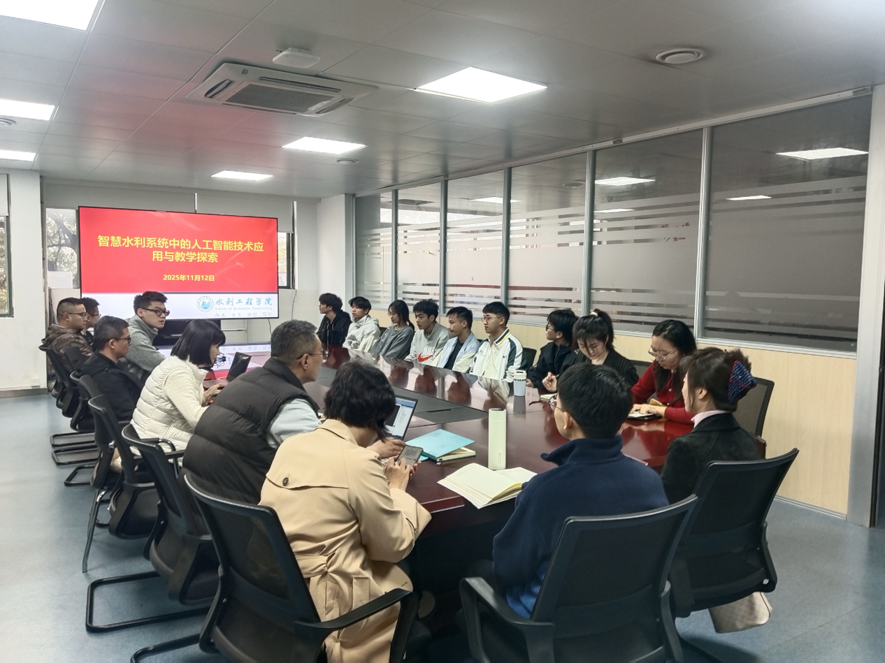 2025年11月12日下午,tyc41183太阳成集团举办“智慧水利系统中的人工智能技术应用与教学探索”专题教学活动。此次活动旨在推动人工智能技术在水利领域的教学与科研融合,促进跨学科创新人才培养。学科处副处长陈一帆、智慧水利系全体教师、学院相关系教师及智慧水利专业学生代表参加活动,开展交流互动。